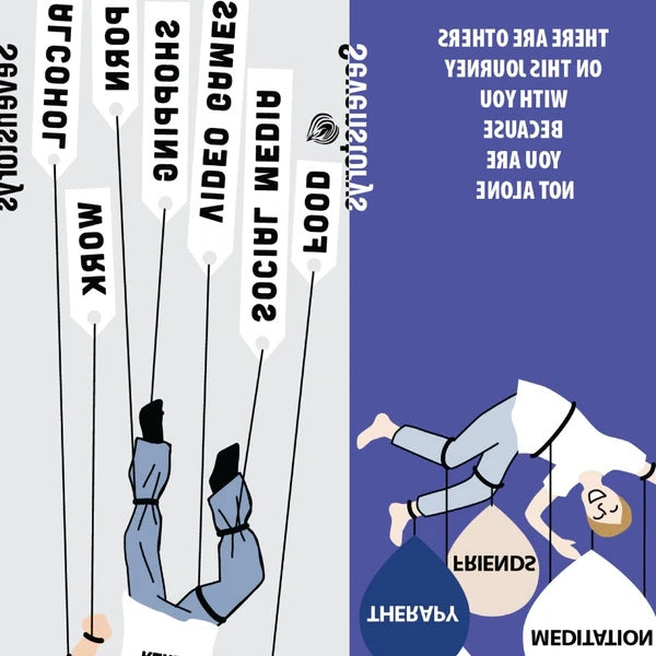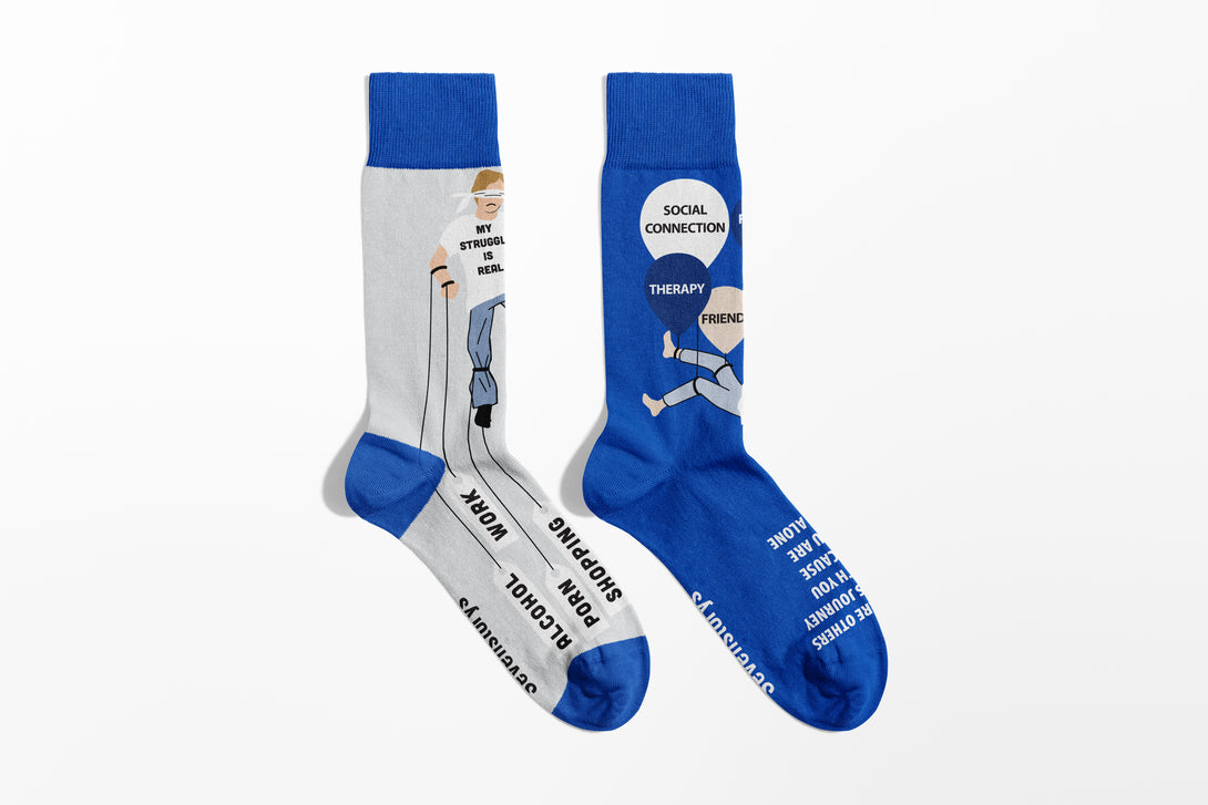 Featuring an uplifting design, they serve as a gentle reminder that while dark times and feelings of loneliness can sometimes push us toward unhealthy coping mechanisms like addiction, there is always a way out. You are never truly alone. These socks are a symbol of strength and support, encouraging you to reach out to others and embrace the help that’s available.