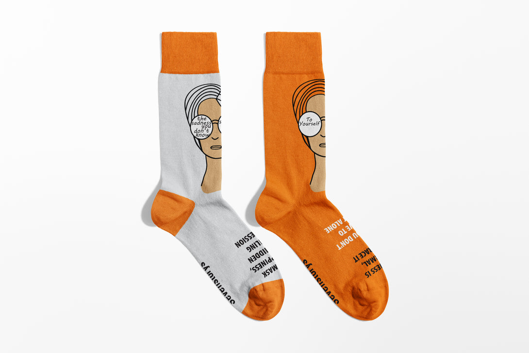 These socks are more than just a comfortable piece of clothing—they carry a meaningful message about embracing the complexities of our emotions. Often, we hide behind a mask of happiness, pretending everything is okay when, in reality, sadness and depression are part of life’s journey.