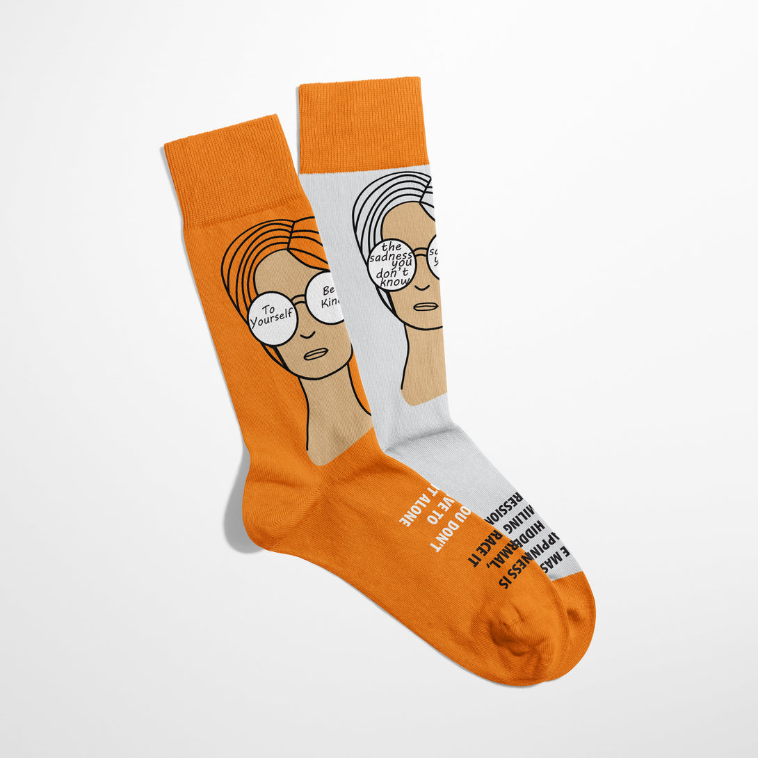 The design on these socks serves as a gentle reminder that it's okay to not always be okay. By acknowledging and embracing our sadness, we can show kindness to ourselves and others. Let these socks be a symbol of self-compassion, encouraging you to be authentic in your feelings and to treat both yourself and those around you with empathy and care.