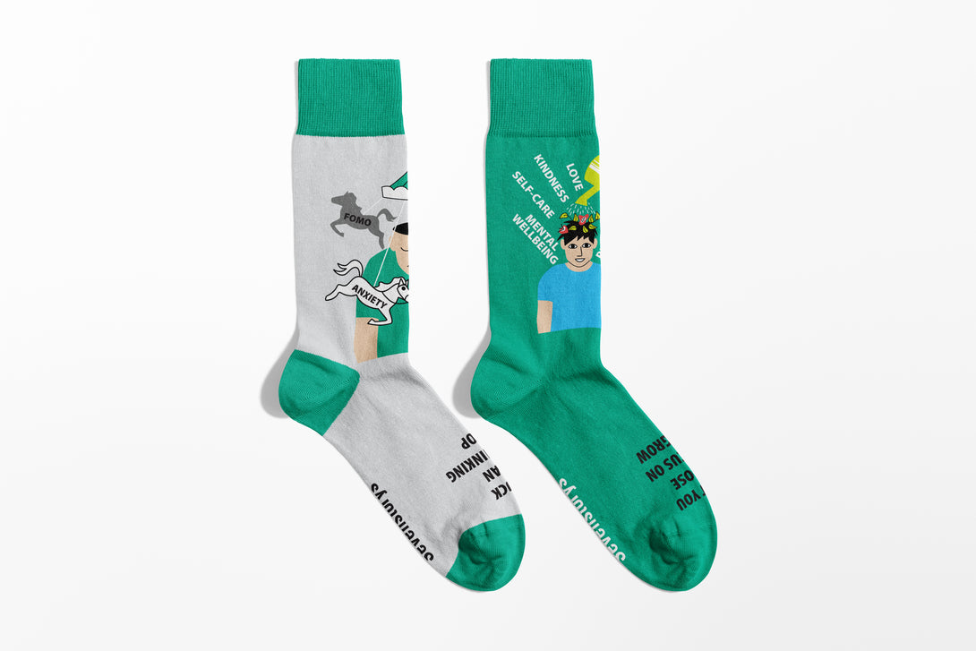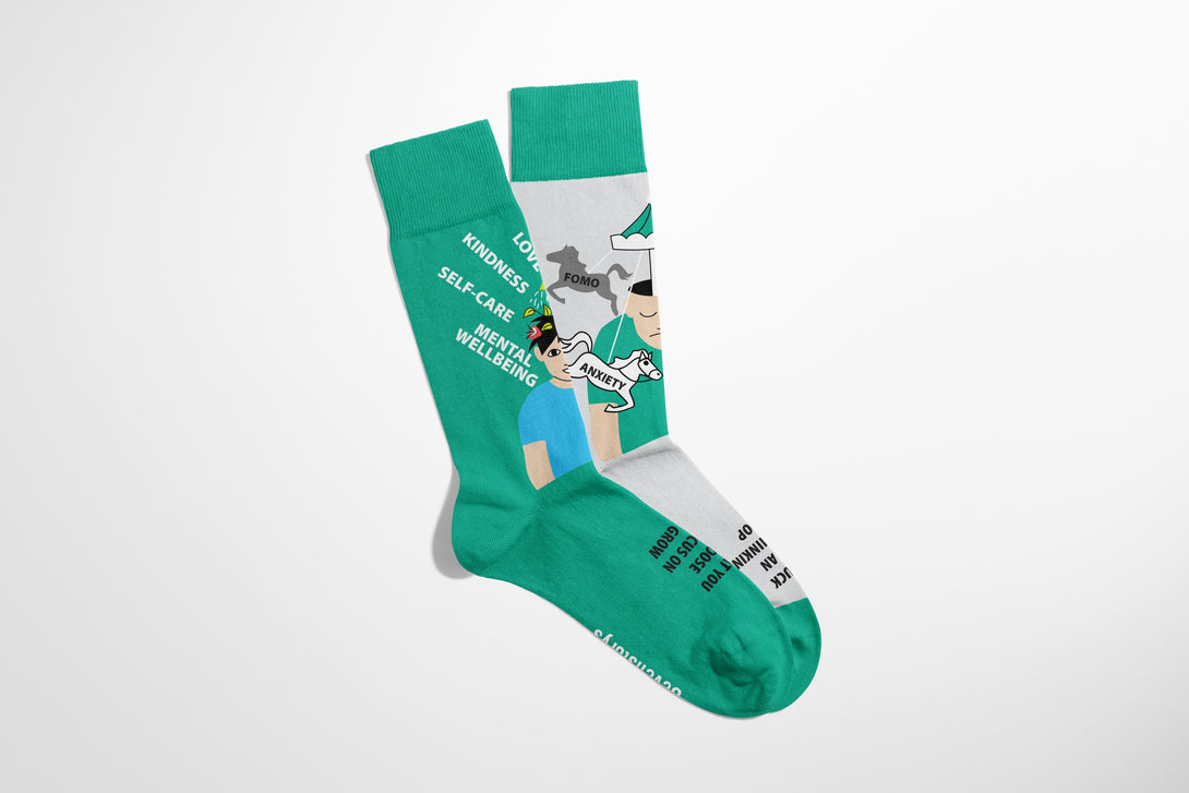 These socks are a reminder to break free from the overthinking loop that can feel like an endless carousel of negative thoughts. When our minds are stuck in cycles of worry and doubt, it can be hard to see a way out.